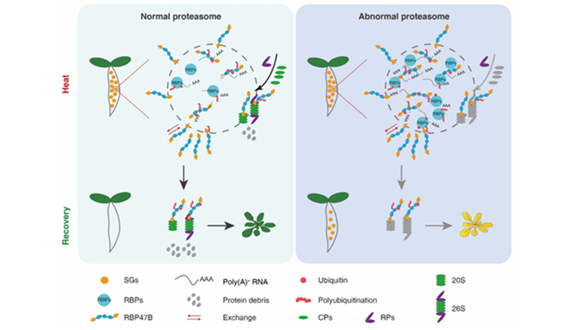 Proteasome resides in and dismantles plant heat stress granules constitutively