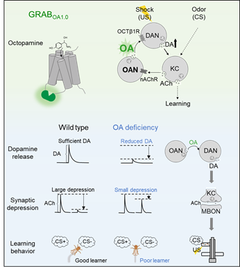 An octopamine-specific GRAB sensor reveals a monoamine relay circuitry that boosts aversive learning