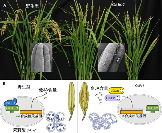Rice transcriptional repressor OsTIE1 controls anther dehiscence and male sterility by regulating JA biosynthesis