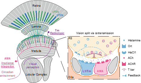 A single photoreceptor splits perception and entrainment by cotransmission