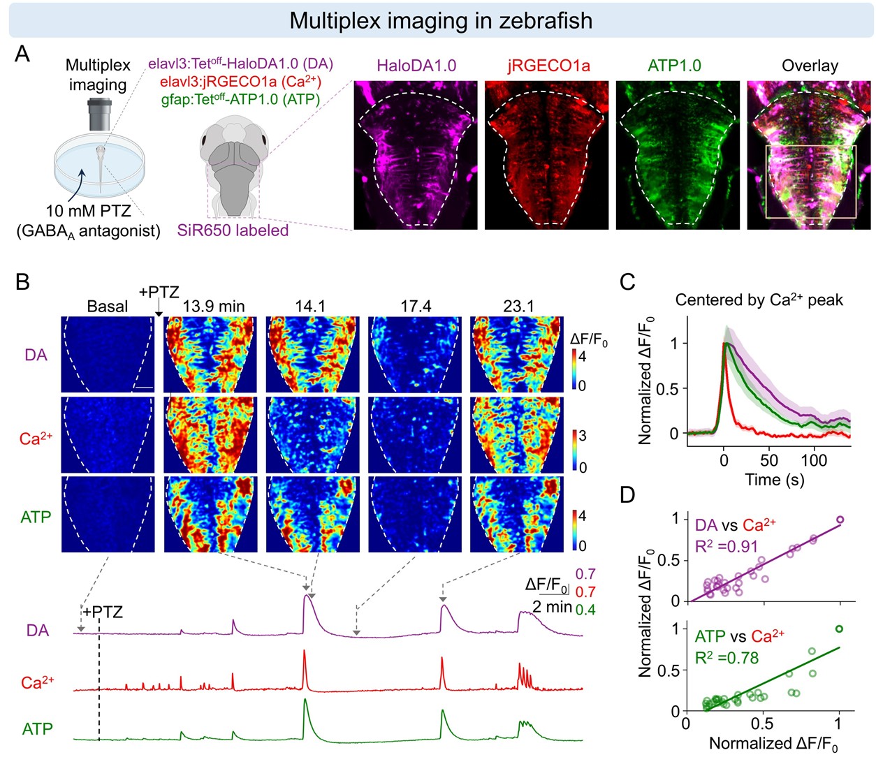 In vivo multiplex imaging of dynamic neurochemical networks with designed far-red dopamine sensors