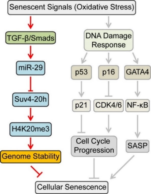 TGF-β signaling alters H4K20me3 status via miR-29 and contributes to cellular senescence and cardiac aging