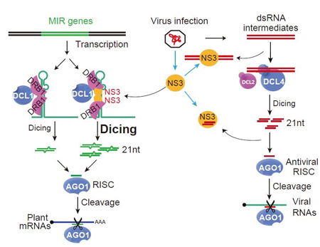 Rice stripe virus NS3 protein regulates primary miRNA processing through association with the miRNA biogenesis factor OsDRB1 and facilitates virus infection in rice