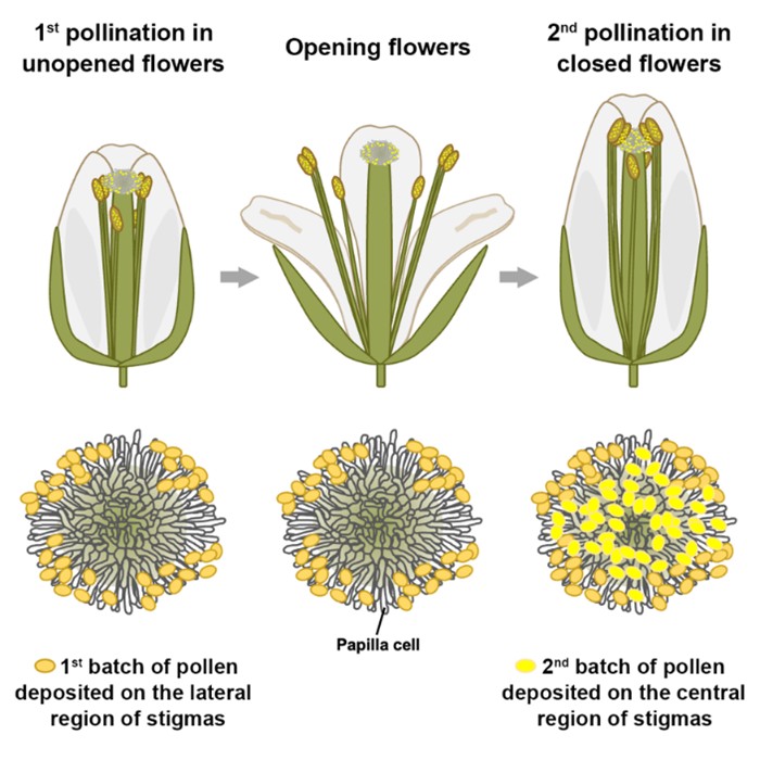 A two-step self-pollination mechanism maximizes fertility in Brassicaceae