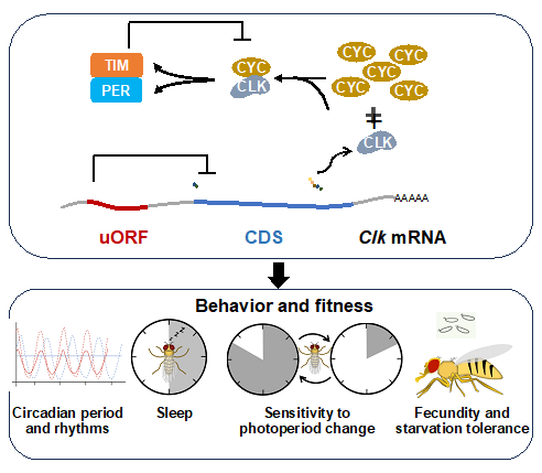 Upstream open reading frames dynamically modulate CLOCK protein translation to regulate circadian rhythms and sleep