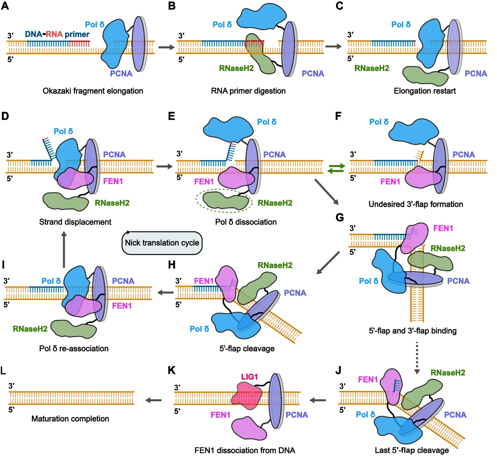 Structural insight into Okazaki fragment maturation mediated by PCNA-bound FEN1 and RNaseH2