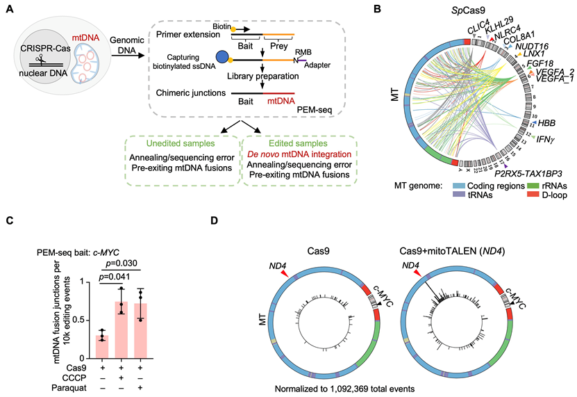 Transfer of mitochondrial DNA into the nuclear genome during induced DNA breaks