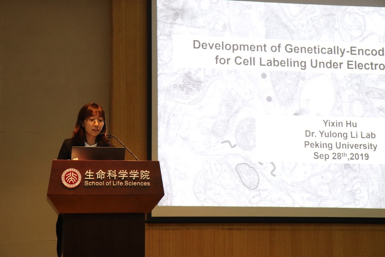 随后是28日的口头报告环节,共有14位同学作口头报告。他们登上讲台,向全体师生介绍他们在科研探索中的发现。同学们研究涉及的领域非常多样,从影响机械感受器发育过程的因子到细菌的趋化系统,从神经递质荧光探针的开发到细胞分化过程中的有丝分裂和染色体重组等等。