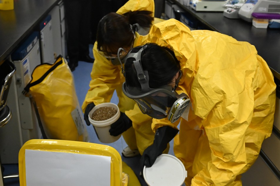 下午2:40在理科四号楼406实验室通过模拟挥发性危化品遗洒的真实场景开展了实验室安全应急演练,通过演练,检验了应急预案的可行性,强化了“快速响应、科学处置”的安全意识。