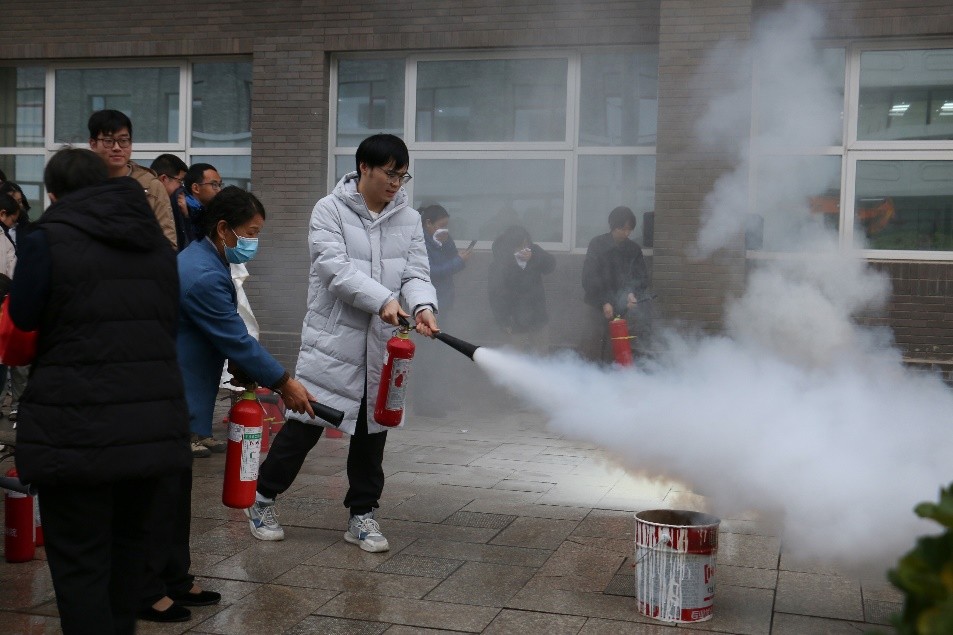 随后,学院师生在现场接受了消防器材实操培训,学习了灭火毯、干粉及二氧化碳灭火器的正确使用方法,并分批次进行了灭火实操演练。
