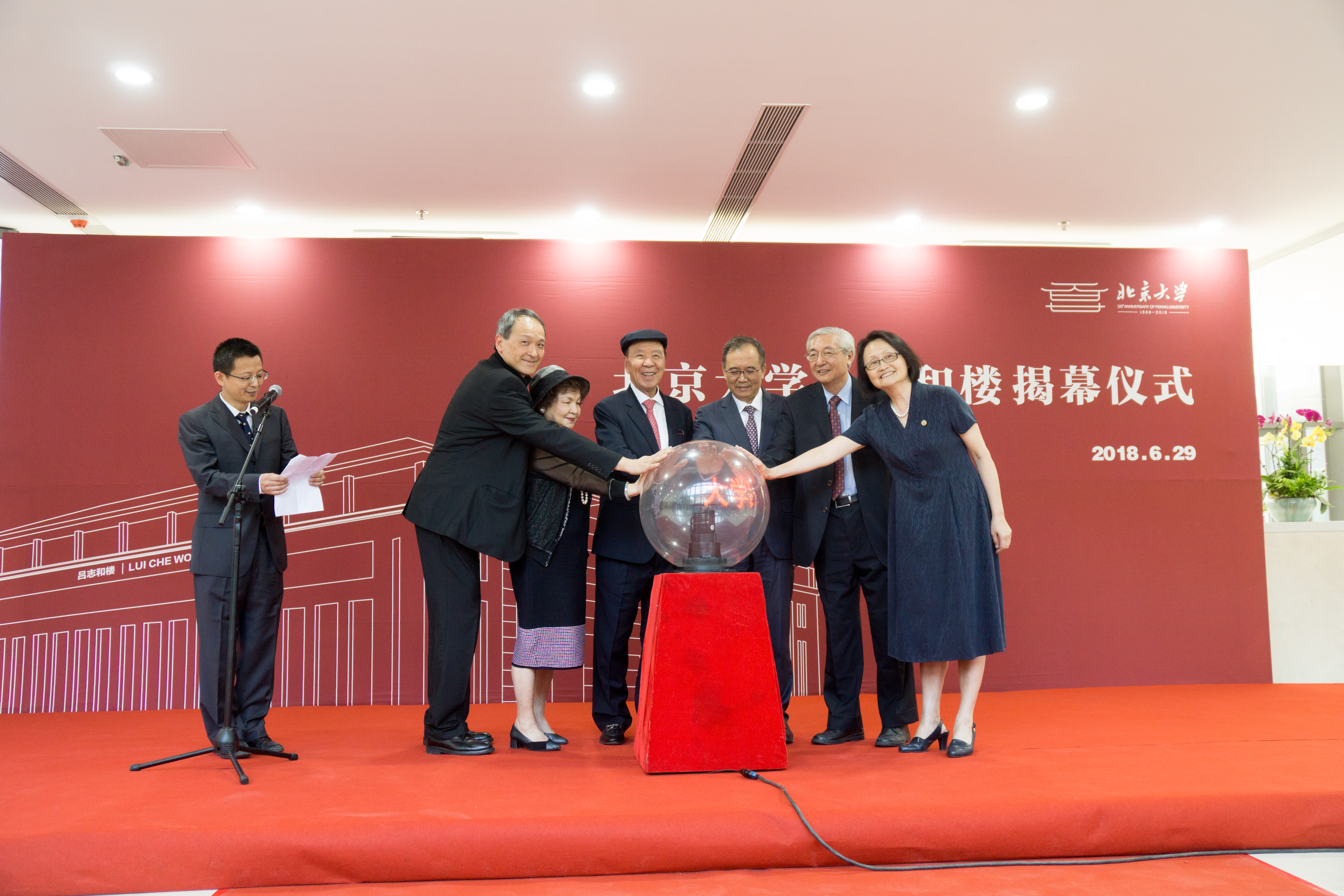 在师生的见证下,吕志和博士、吕赵锦屏女士、吕志和博士之子吕耀南先生、林建华校长、许智宏院士、吴虹院长共同点亮水晶球,为“吕志和楼”揭幕,并为“吕志和楼”纪念铭牌揭幕。