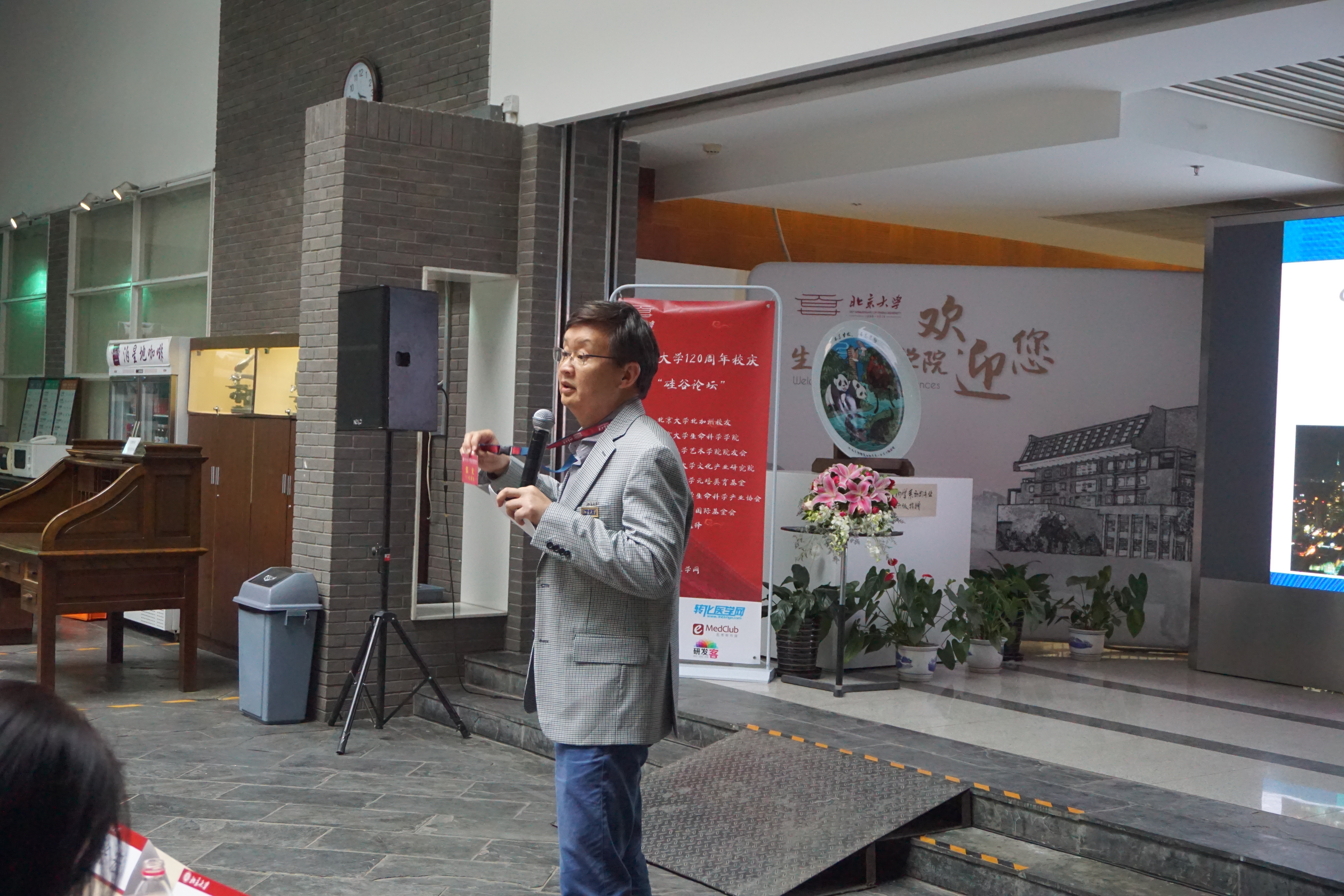 最后,北京爸爸的选择科技有限公司创始人、北大青年CEO王胜地分享了他的创业经历,首先他强调了专业的对于创业的重要性,进一步强调了生物医药的广阔发展前景。他指出,在商业市场上将一种产业做到极致是极其需要技术含量的,并结合相关的实例为大家指出创新的商业化问题,让大家受益匪浅。