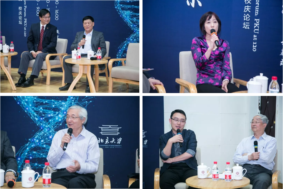 教育论坛由李沉简教授和许崇任教授主持。参与讨论的嘉宾有:1959本校友,中国科学院院士,原北大校长许智宏;1970本校友,东宝实业集团有限公司董事长,通化东宝药业股份有限公司董事长李一奎;1984本校友,美国国家科学院院士,美国加州大学河滨分校教授陈雪梅;1984本校友,优瑞科公司战略发展高级总监张红兵;1999本校友,北京四中教学处副主任肖振龙。