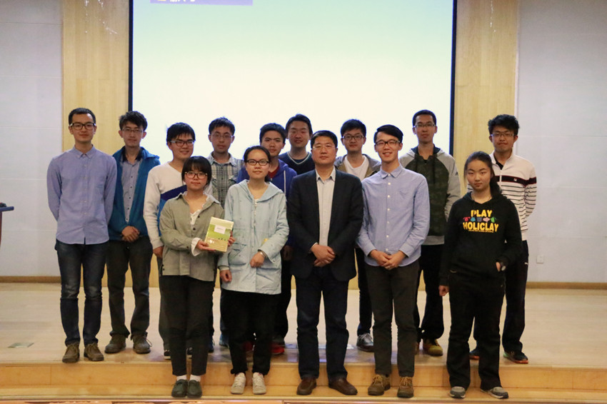 讲座结束后,刘双江教授与负责组织本场讲座的同学合影留念,并向他们赠送《寂静的春天》一书,鼓励他们关注生态环境,将所学生命科学知识与国家社会需要、人类社会发展结合起来。