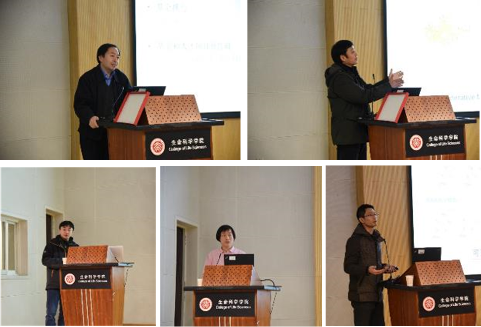 (左上:王世强副院长作科研和平台建设工作报告;右上:邓宏魁教授介绍优秀科研成果;