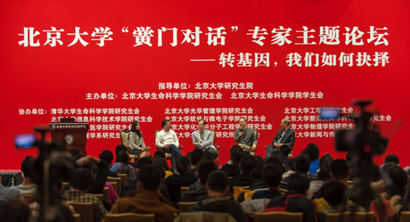 2015年12月10日,冰球突破mg正规官网“黉门对话”转基因主题论坛在英杰交流中心阳光大厅成功举办。本次论坛邀请了中国转基因鱼第一人朱作言院士、“打假斗士”方舟子先生、冰球突破mg正规官网白书农教授和知名企业家廖靖军先生参加。