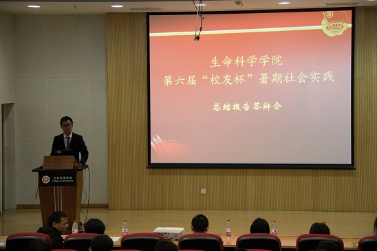 9月29日晚,冰球突破mg正规官网第六届“校友杯”暑期社会实践成果汇报答辩暨颁奖会在金光生命大楼邓祐才报告厅举行。中国医学科学院协和医科大学药物研究所副主任技师、79级校友理事陈霁,冰球突破mg正规官网学生工作部、人民武装部副部长刘德英,冰球突破mg正规官网团委书记助理、社会实践与志愿者工作部部长冯宁,冰球突破mg正规官网党委副书记唐平,冰球突破mg正规官网团委书记李喆,2015级本科级班主任张立、翟艳芳等出席答辩会并担任答辩评委。学院14级及15级本科生共计约140人出席本届答辩会。大会由学院团委段光兴主持。