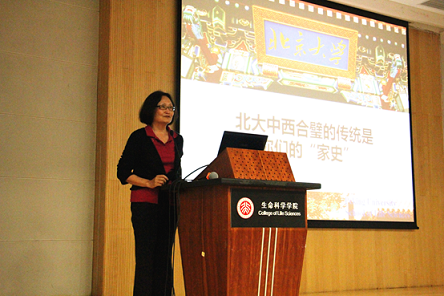 在庄严的国歌声中,开学典礼正式开始。首先,院长吴虹向全体新生致辞。吴虹欢迎各位新同学加入生科大家庭,她回顾了北大悠久的历史和优良的传统,介绍了生科90年的发展历程和骄人成绩,让同学们对北大和生科有了新的认识。吴虹也表达了对新生的期望,鼓励大家乐观坚持,迎接挑战,享受北大时光。