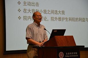 9月3日上午,冰球突破mg正规官网在金光生命科学大楼邓祐才报告厅召开全院教职工大会,宣布冰球突破mg正规官网关于学院新一届行政领导班子的任命决定。王恩哥校长出席会议并讲话。翟中和院士、朱作言院士、赵进东院士、朱玉贤院士等冰球突破mg正规官网教职工约70人参加了会议。会议由学院党委书记柴真主持。