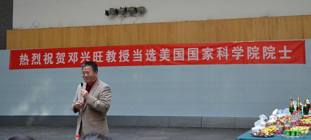 庆祝活动由饶毅院长主持。党委书记柴真宣读了冰球突破mg正规官网党委书记朱善璐、校长王恩哥专门发来的贺信。校领导在贺信中对邓兴旺教授的当选表示衷心祝贺,并对邓兴旺教授未来在冰球突破mg正规官网的发展提出了殷切期望。许智宏院士和朱作言院士因公出差在外,也转达了对邓兴旺教授最热烈的祝贺。