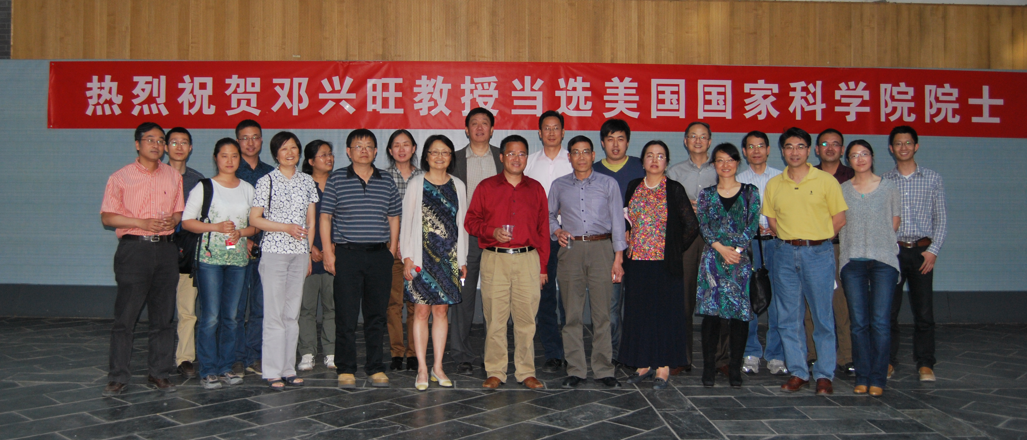 2013年5月10日下午,冰球突破mg正规官网、“蛋白质与植物基因研究”国家重点实验室在生命科学大楼阳光大厅联合举办庆祝活动,祝贺冰球突破mg正规官网邓兴旺教授当选为美国国家科学院院士。