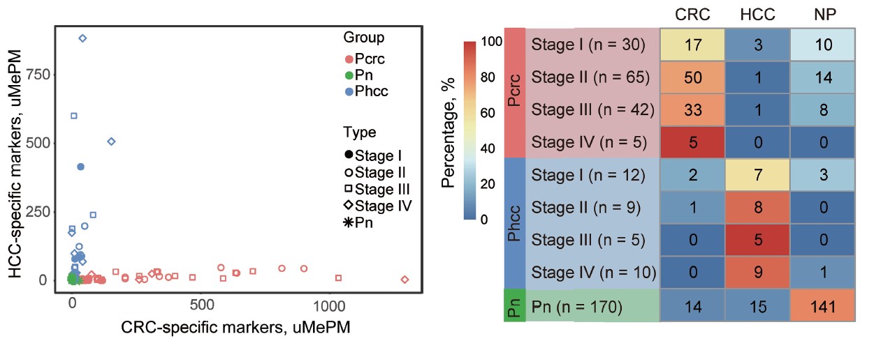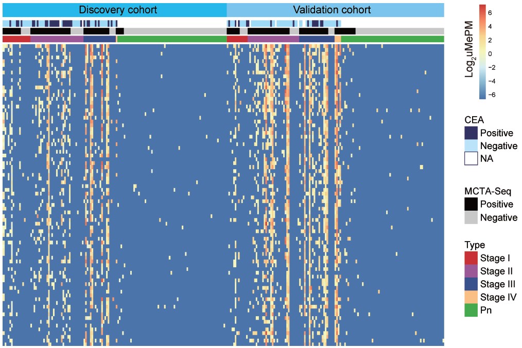 结直肠癌是一种常见的消化道恶性肿瘤,死亡率高,发病率逐年上升,而早期筛查可显著减少结直肠癌的发病率和死亡率。在之前的研究中,课题组基于人类基因组中CpG短串联序列的分布特征,研发出一种能够以基因组规模且高灵敏地分析血浆游离DNA异常高甲基化CpG岛的新技术MCTA-Seq并将该技术用于肝细胞癌无创诊断,论文发表于2015年11月《Cell Research》(细胞研究)上。在本项研究中,合作团队将该技术进一步应用于结直肠癌早期无创诊断。
