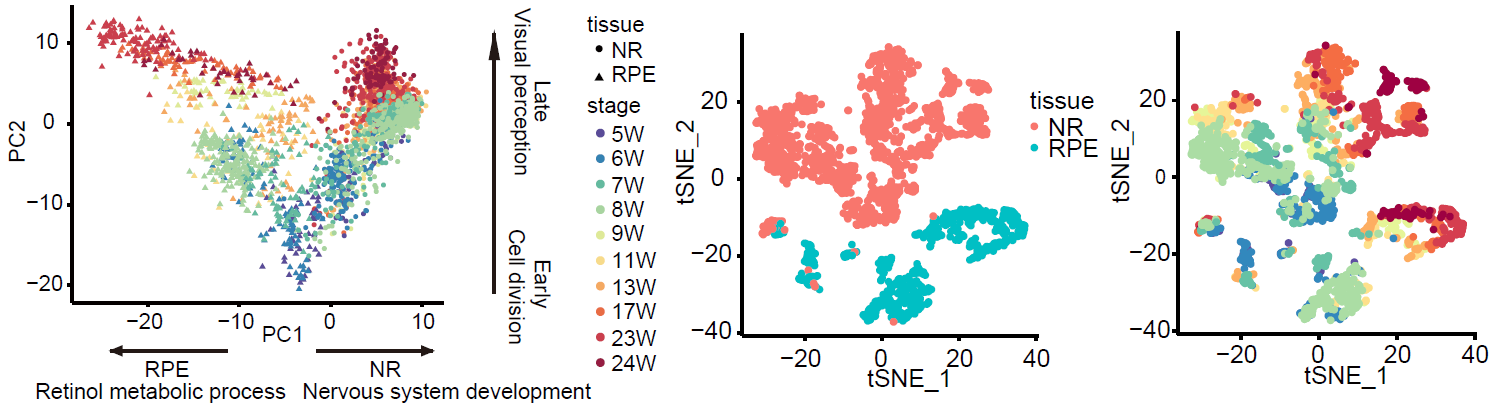 2019年7月3日,人类主要器官发育图谱又添新作,汤富酬课题组与乔杰课题组在《Plos Biology》杂志上在线发表了题为“Dissecting the transcriptome landscape of the human fetal neural retina and retinal pigment epithelium by single-cell RNA-seq analysis”(通过单细胞转录组分析解析人类胚胎视网膜神经层和色素上皮层的转录组图谱)的研究成果,对来自外胚层的视网膜进行了深入的发育细胞图谱研究。