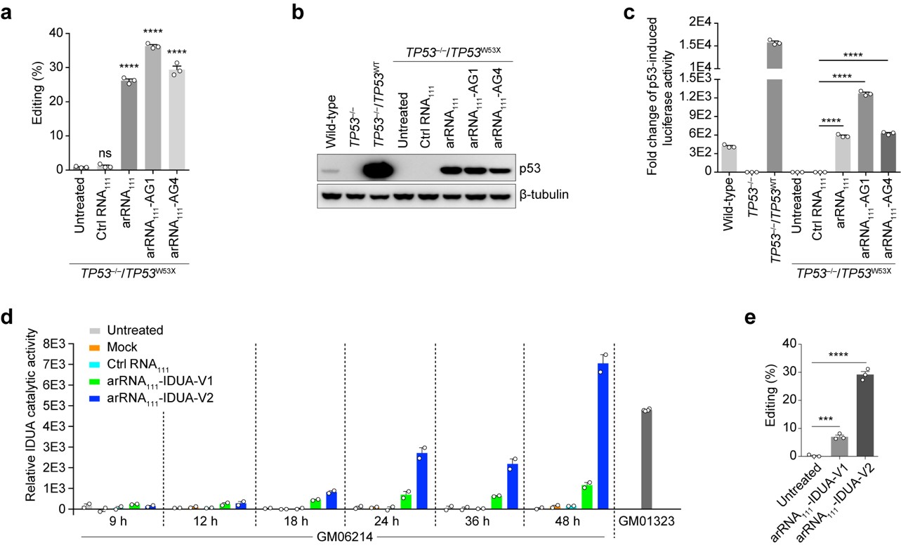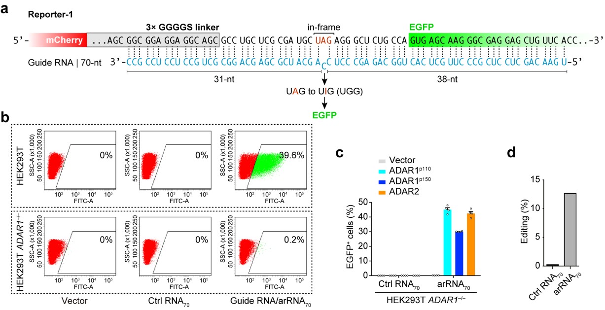 图一、 利用细胞内源ADAR1 蛋白实现精准的RNA编辑。