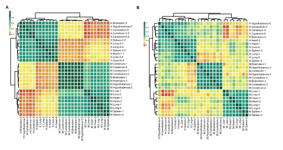 本项研究中,伊成器和合作团队通过对43个人体组织样本、16个小鼠组织样本和9种人类细胞系样本的全转录组m6A和m6Am测序及系统、全面的生物信息学分析,概括了其在人体和小鼠组织中的分布规律。该研究首次揭示了m6A和m6Am在脑组织具有较强的组织特异性。此外,m6A和m6Am修饰含量与其各自对应的修饰酶存在显著相关性;并且含有m6A的区域富集了大量潜在功能性SNP位点及microRNA靶向位点。该研究同时发现,在人体组织中m6Am修饰与蛋白表达水平呈负相关。跨物种的m6A和m6Am甲基化图谱分析揭示了m6A和m6Am修饰的物种特异性。综上,该项研究首次全面解析了人体和小鼠组织中m6A和m6Am修饰的分布规律和调控机制,为m6A和m6Am修饰的功能研究提供了重要依据。