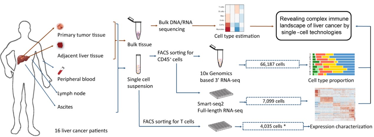 2019年10月31日,冰球突破mg正规官网生物医学前沿创新中心(BIOPIC)、冰球突破mg正规官网、北京未来基因诊断高精尖创新中心(ICG)张泽民课题组联合首都医科大学附属北京世纪坛医院彭吉润课题组以及德国药企勃林格殷格翰公司多位科学家,在国际期刊Cell上发表了题为Landscape and Dynamics of Single Immune Cells in Hepatocellular Carcinoma的研究论文,结合10x Genomics和SMART-seq2两种单细胞RNA测序技术,对肝癌患者多个组织的免疫细胞做出了系统性的刻画,分析了免疫细胞动态迁移和状态转化的特征,探索了它们在肝癌治疗上的潜在价值。