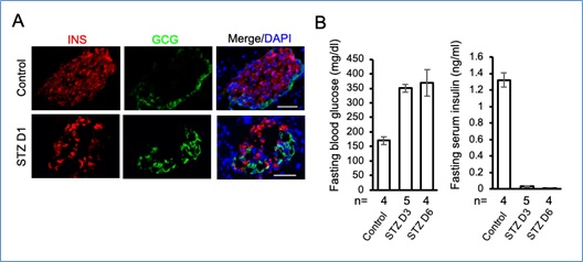 图1: STZ处理快速杀死胰岛β细胞,产生糖尿病表型。