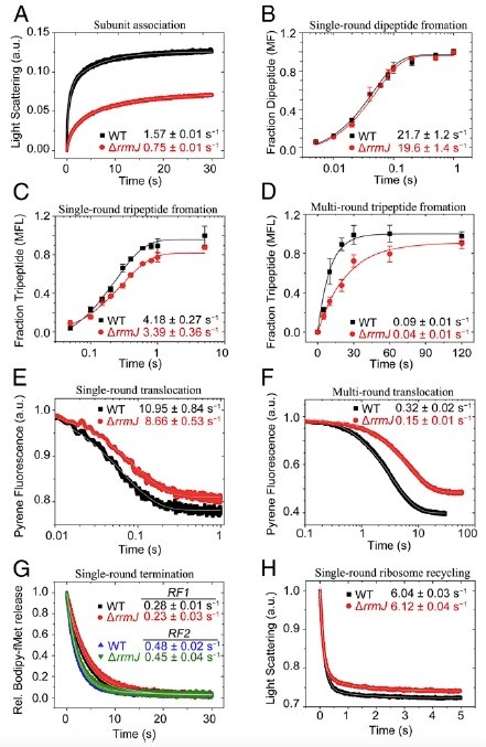 Fig 2. rrmJ敲除细菌核糖体的动力学快速生化分析