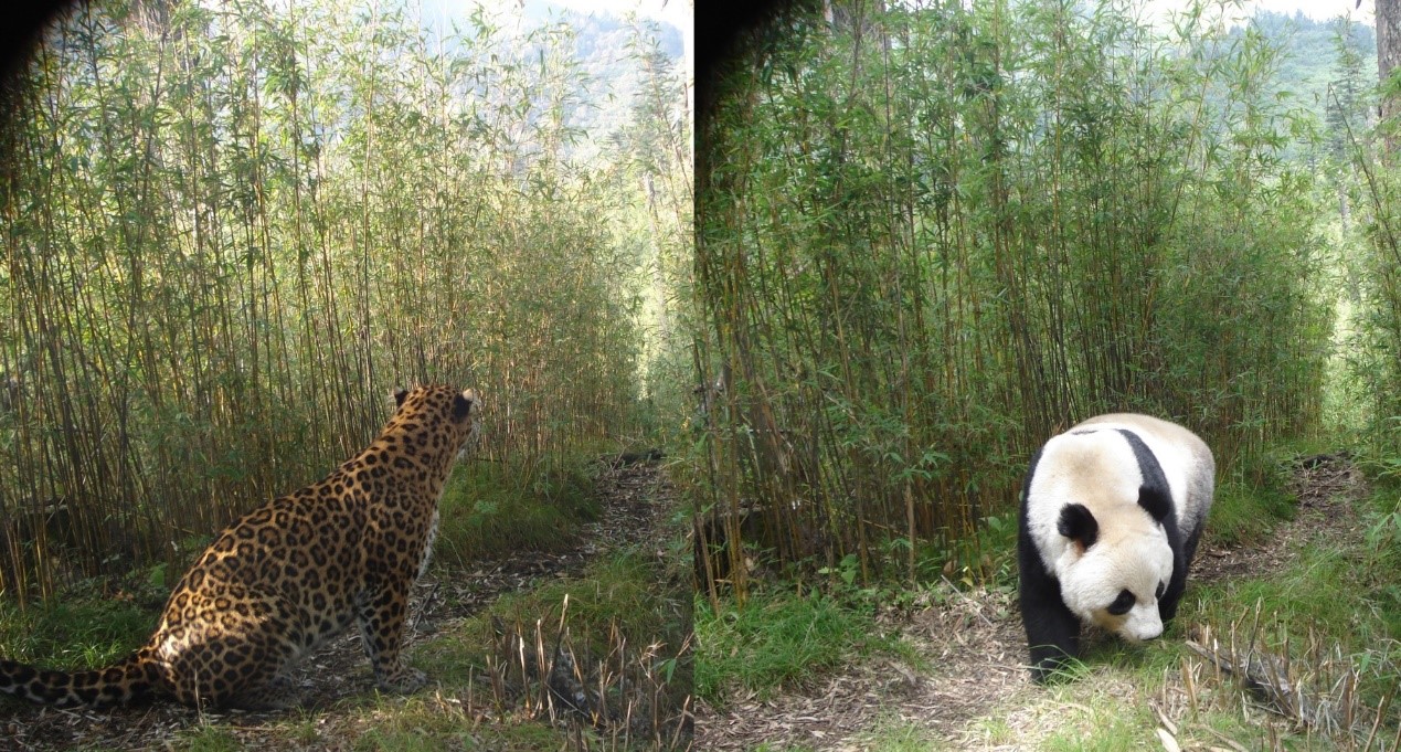 豹与大熊猫共同利用森林生境(李晟课题组红外相机拍摄@陕西长青国家级自然保护区)