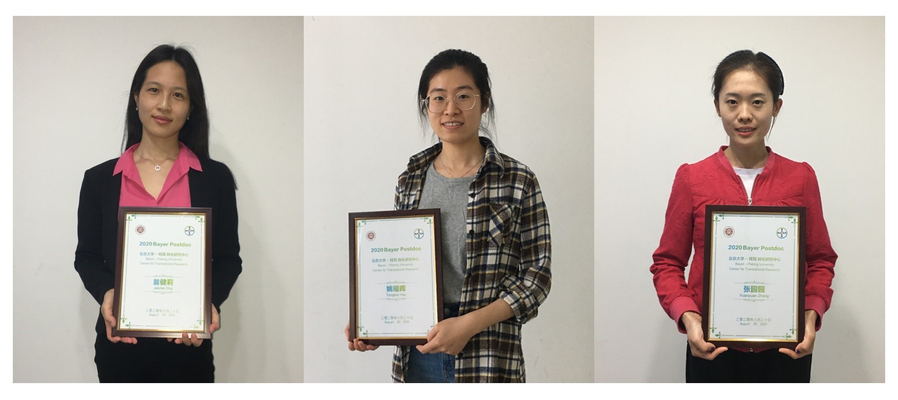 图片:冰球突破mg正规官网翁健莉博士、冰球突破mg正规官网姚曈晖博士、前沿交叉学科研究院张园园博士获2020年度“拜耳博士后奖”