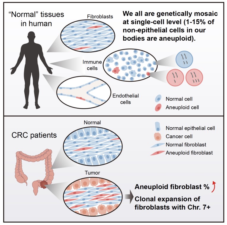 综上所述,本项研究利用高精度单细胞多组学测序技术,深入系统地分析了27个人类个体的多种非上皮细胞的基因组拷贝数变异情况,揭示了基因组拷贝数变异普遍存在于人体成纤维细胞、免疫细胞和血管内皮细胞中,并发现了结直肠癌肿瘤微环境中的成纤维细胞中发生基因组拷贝数异常细胞的比例大幅度增加,而且这类遗传异常的成纤维细胞在肿瘤组织中存在克隆扩张现象。此项研究突破了人们对人体“正常”组织中细胞遗传变异的认知,充分证明了以基因组拷贝数变异为代表的遗传变异在人群中普遍存在,在人体主要细胞类型中普遍存在,提示基因组拷贝数变异在人类疾病和衰老中可能存在重要作用,并对肿瘤微环境和肿瘤治疗研究提供了新的线索。