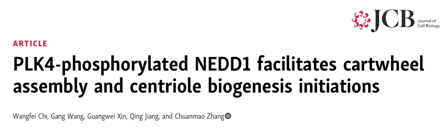 2020年12月22日,冰球突破mg正规官网张传茂教授实验室在国际知名细胞生物学杂志Journal of Cell Biology以长文形式在线发表了题为“PLK4-phosphorylated NEDD1 facilitates cartwheel assembly and centriole biogenesis initiations”(https://rupress.org/jcb/article-abstract/220/1/e202002151/211633/PLK4-phosphorylated-NEDD1-facilitates-cartwheel?redirectedFrom=fulltext)的研究论文。该项工作发现,中心粒外周基质蛋白(PCM)的组分之一NEDD1对于车轮结构装配和中心粒发生的起始至关重要,并且这个过程受到了PLK4激酶的磷酸化调控,该项工作明确了车轮结构装配起始的精确位置并阐明了其具体的调控机制。
