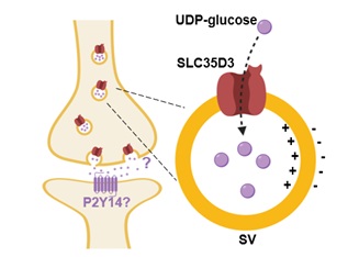 有趣的是,前人对于G蛋白偶联受体的研究发现P2Y14受体可被UDP-葡萄糖激活 [3],这进一步提示UDP-葡萄糖有可能作为新型胞外信号分子发挥作用。综上所述,对突触小泡定位的新型转运体及其底物的探索有助于更好地理解神经元信息传递的分子机制。该研究也充分体现了学科交叉在神经生物学研究中的应用。