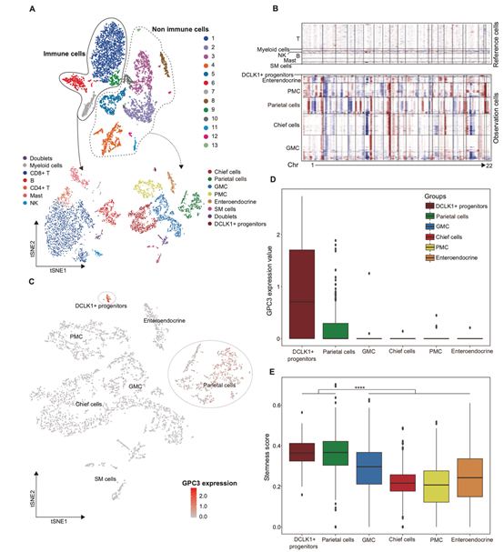 图4:胃肝样腺癌复杂的细胞分化特征和肿瘤微环境