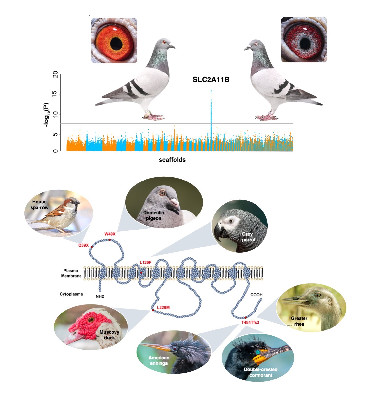 基因组分析发现SLC2A11B功能缺失突变决定家鸽白眼性状并与鸟类眼色多样性相关(Si et al. 2021, PLoS Gen)