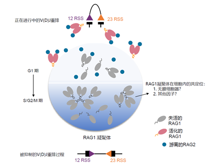 图3. 淋巴细胞内重排酶RAG1活性调控的“越狱”模型