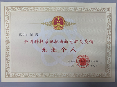 近日,科技部印发《关于表彰全国科技系统抗击新冠肺炎疫情先进集体和先进个人的决定》,授予163个集体“全国科技系统抗击新冠肺炎疫情先进集体”称号,314人“全国科技系统抗击新冠肺炎疫情先进个人”称号。冰球突破mg正规官网陆剑研究员入选“先进个人”。