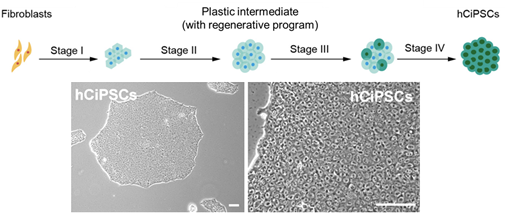 用下,同样可以发生类似去分化的现象,获得具有一定可塑性的中间状态。在此基础上,研究团队最终实现了人CiPS细胞的成功诱导。