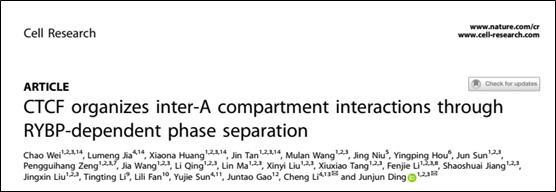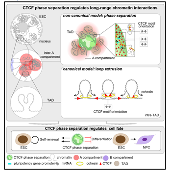 图-3. CTCF通过相分离调控染色质长距离互作的非经典模型(摘自《Cell Research》发表论文)