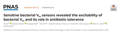 2023年1月9日,冰球突破mg正规官网生物医学前沿创新中心(BIOPIC)、北京未来基因诊断高精尖创新中心(ICG)、冰球突破mg正规官网白凡课题组,在PNAS杂志上发表题为Sensitive bacterial Vm sensors revealed the excitability of bacterial Vm and its role in antibiotic tolerance的研究论文,报道了新型基因编码的高时空分辨率细菌膜电位指示探针ViBac,利用该探针首次发现了细菌膜电位存在类似神经细胞的电“兴奋”和“静息”状态,并通过进一步的研究揭示了细菌膜电位的动态变化对细菌抗生素耐药的重要影响。