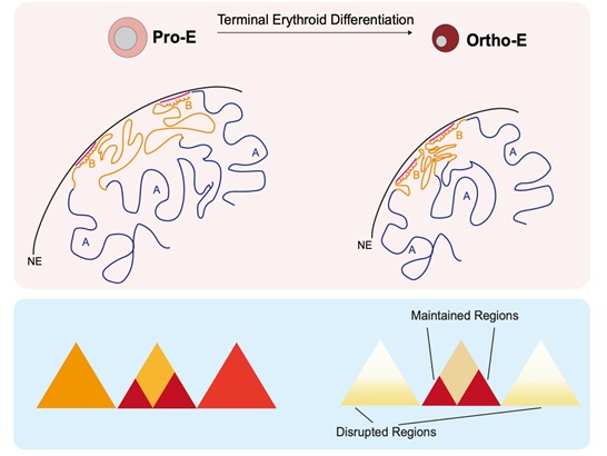 综上所述,本研究利用多种染色质结构解析技术,解析了人类红细胞终末分化染色质压缩的一般规律及异染色质/活跃染色质相互作用在染色质压缩中的主要角色; 揭示了GATA1通过保持红系终末分化中染色质结构域完整调控红细胞分化过程的潜在新功能。本研究为更好的理解染色质高级结构改变特别是染色质压缩提供了理论基础,同时也为红细胞终末发育相关疾病的研究提供了新的思路。