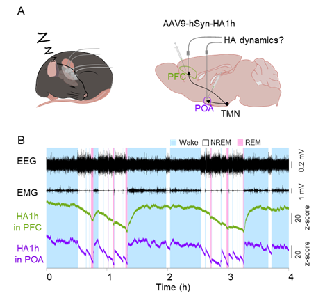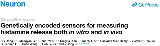 sensors for measuring histamine release both in vitro and in vivo的研究论文,报道了新型基因编码的组胺探针GRABHA的开发,以及结合新工具对睡眠觉醒过程中的组胺动态调控的研究。