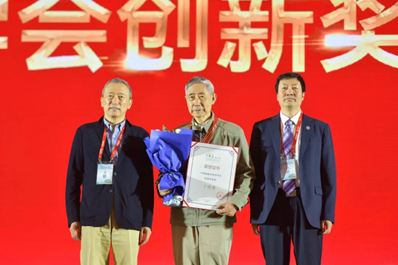 细胞生物学会名誉理事长裴钢院士、理事长宋保亮院士,为丁明孝教授颁奖
