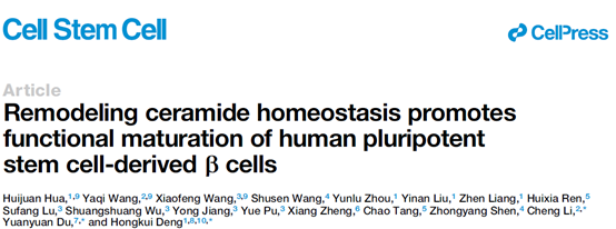 2024年5月1日,冰球突破mg正规官网邓宏魁课题组和李程课题组合作在Cell Stem Cell期刊发表题为Remodeling ceramide homeostasis promotes functional maturation of human pluripotent stem cell-derived β cells的研究论文。该研究解析了人多能干细胞衍生的胰岛素分泌细胞(胰岛β细胞)功能成熟的过程,阐述了胰岛β细胞功能成熟的调控模式;在此基础上,通过靶向调控胰岛β细胞成熟的因子,研究团队预测了一个小分子化合物库,经过筛选发现HDAC抑制剂TH34有效促进胰岛β细胞的体外功能成熟。