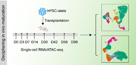 图1,单细胞RNA/ATAC测序解析人多能干细胞衍生胰岛β细胞在体内的成熟过程。