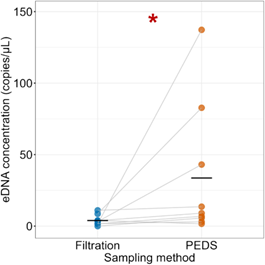 图4. 两种采样方法检出的长江江豚eDNA浓度。